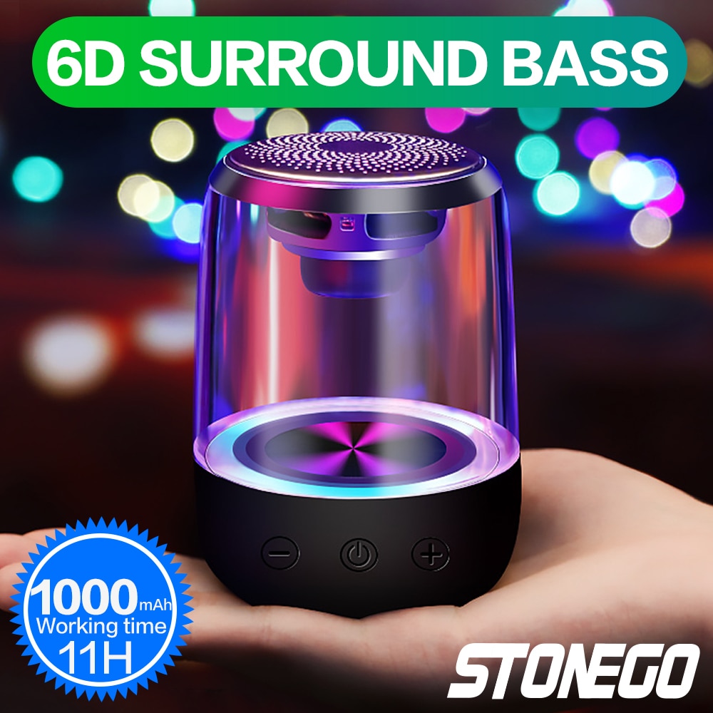 STOENGO True Wireless Stereo Speaker with Transparent Design, Breathing LED Light, TWS Bluetooth 5.0, TF Card & AUX Audio Input
