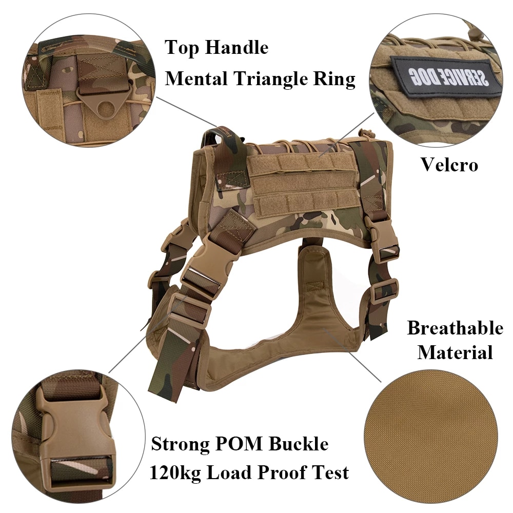 Top handle for your dogs lead & control and one Metal V-ring on the front for dog leash attachment.