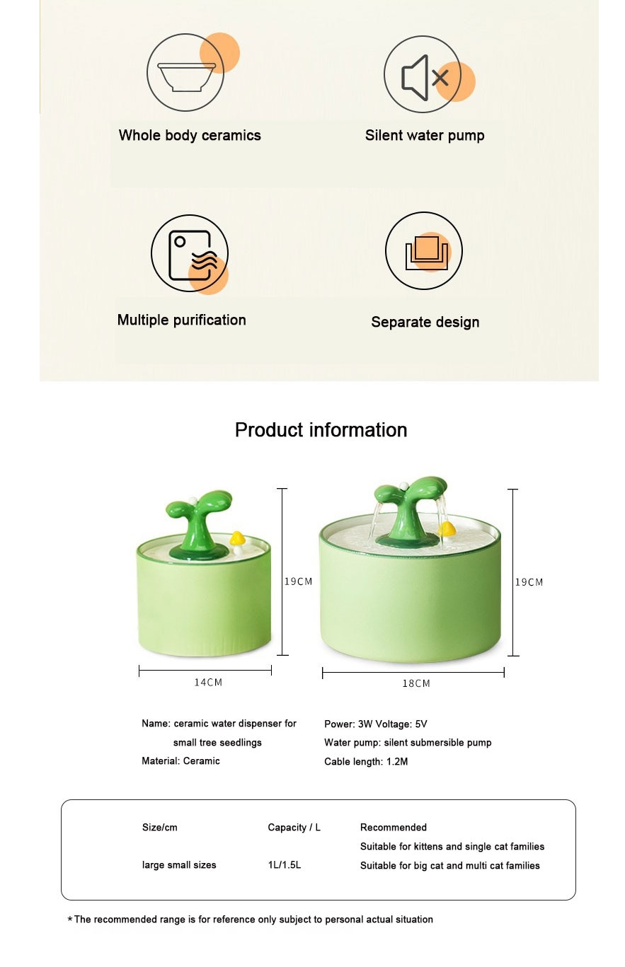 Time Setting : No Max Output : 500g With Water Dispenser : Yes Power Source : CHARGE Origin : CN(Origin) Min Output : 200g Material : Ceramics Type : cats