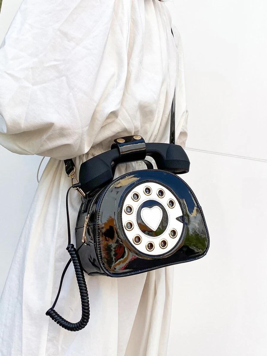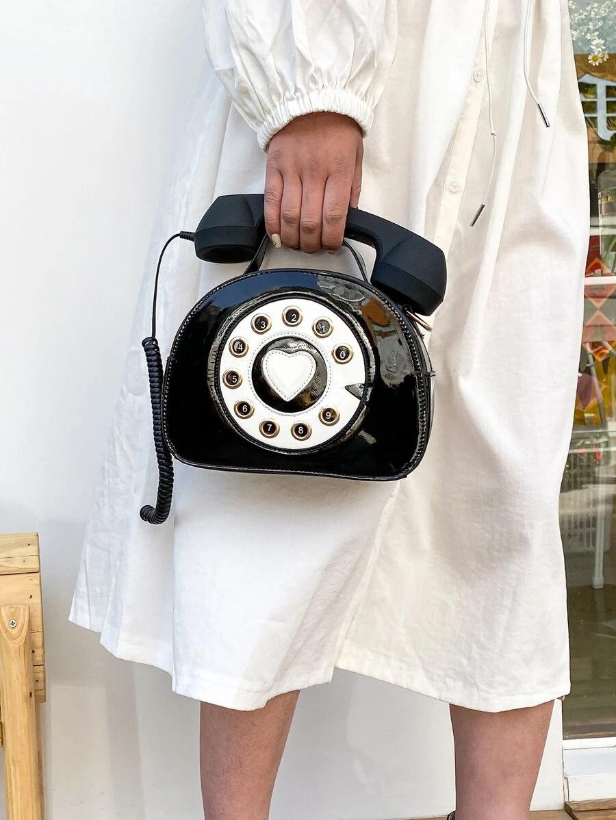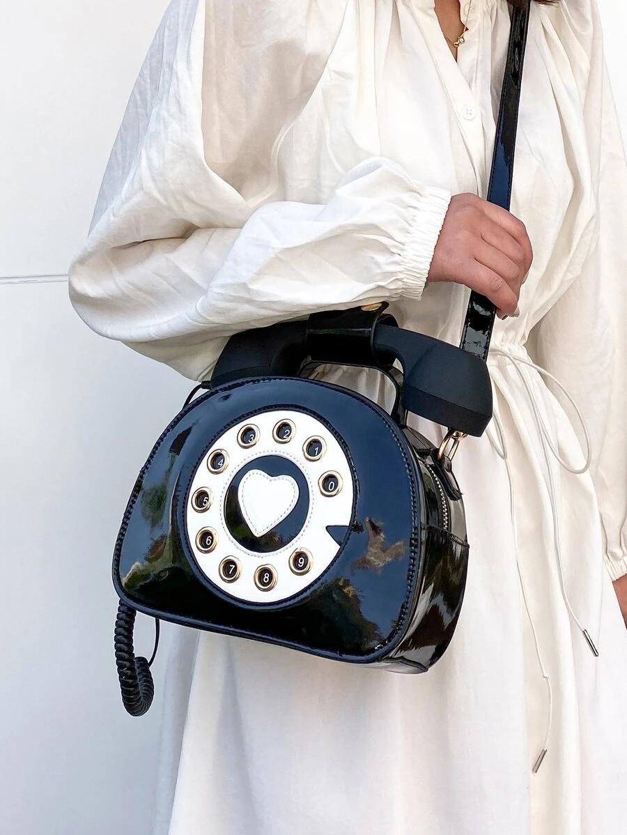 Color: Black Strap Type: Adjustable, Top Handle Pattern Type: Colorblock Style: Preppy Bag Size: Small Quantity: 1 piece Magnetic: No Type: Novelty Bag Composition: 100% Polyurethane Material: PU Leather