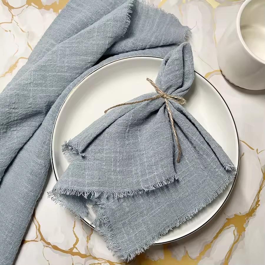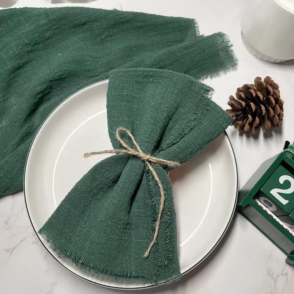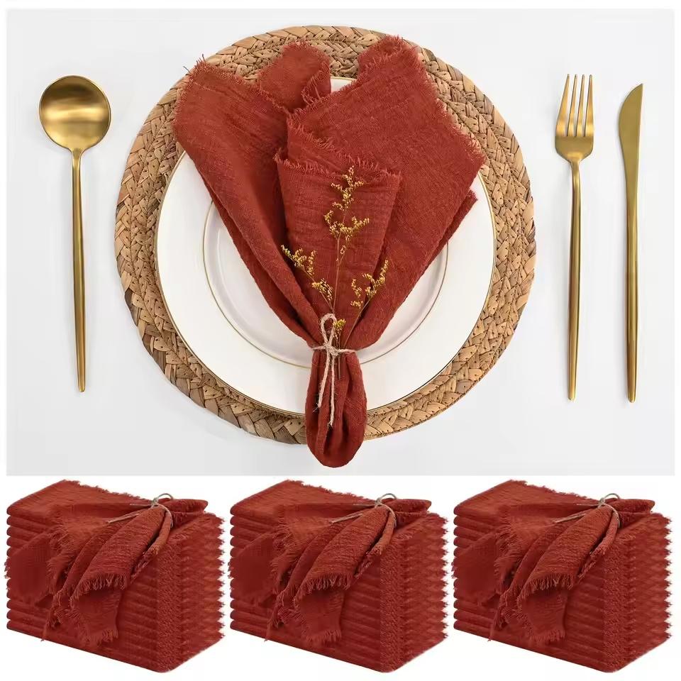 50pcs 32x32cm Christmas Red Gauze Cotton Napkins Reusable Tea Towel Wedding Party Table Xmas Decor New Year Retro Burrs Napkins