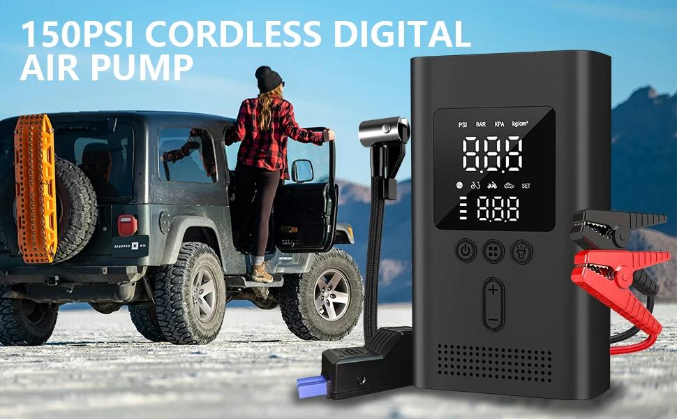 1500A Jump Starter Q9L with Air Compressor 150PSI Digital Tire Inflator Car Charger Booster Starting(9.0 Gas/6.5L Diesel)