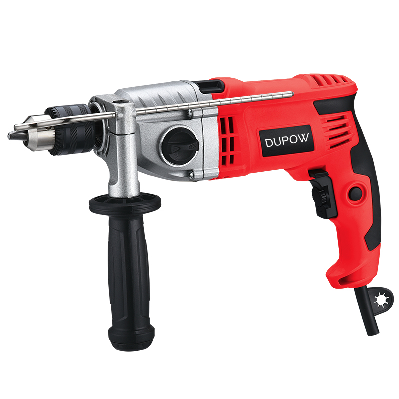 DUPOW professional hammer drill with 800 W can realize fast and efficient operation. Hammer and drill 2 mode in 1 for brick,wood, steel, concrete, masonry, etc.Drilling Cap Steel:10 mm Concrete:13mm Wood:25mm