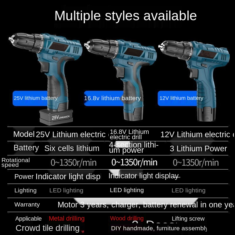 Power Drills Electric Brushless Handheld Guns Hand Drill Torque Driver with Wrench Impact Flat Drill