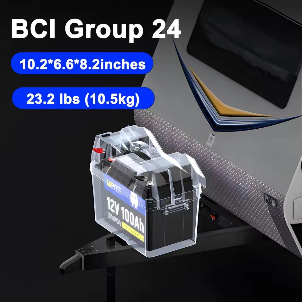 Wattcycle LiFePO4 Battery 12V 100Ah Group 24 Built-in 100A BMS Rechargeable Lithium Iron Phosphate Battery Packs For RV, etc